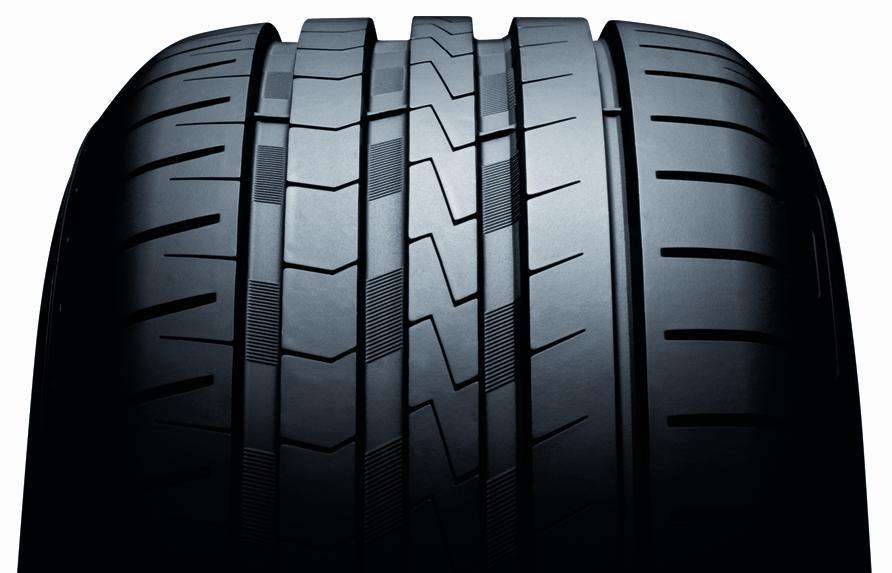 | Cztery wzdłużne rowki i asymetrycznie ułożone nacięcia na bocznej części opony. | Efektywna odporność na aquaplaning i niski poziom hałasu wewnętrznego. |