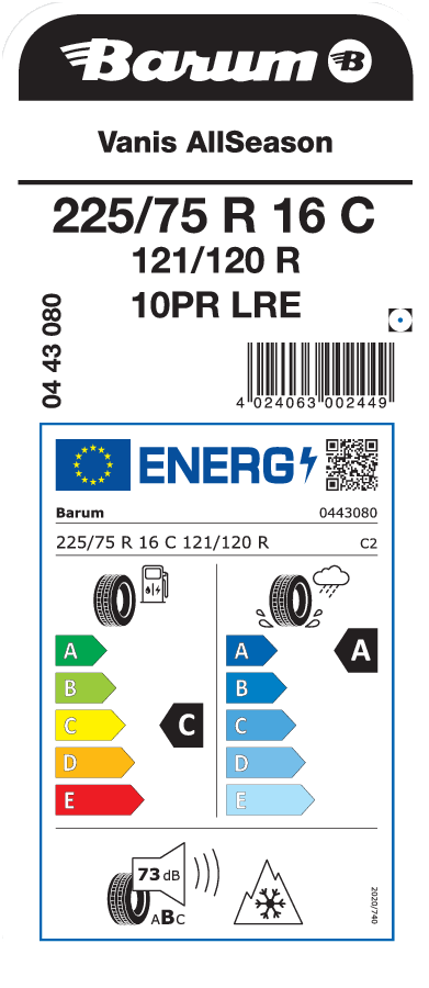 Barum Vanis AllSeason 225/75R16 C opona dostawcza całoroczna 121/120R ( C, A, B, 73dB ) DOT(2023)